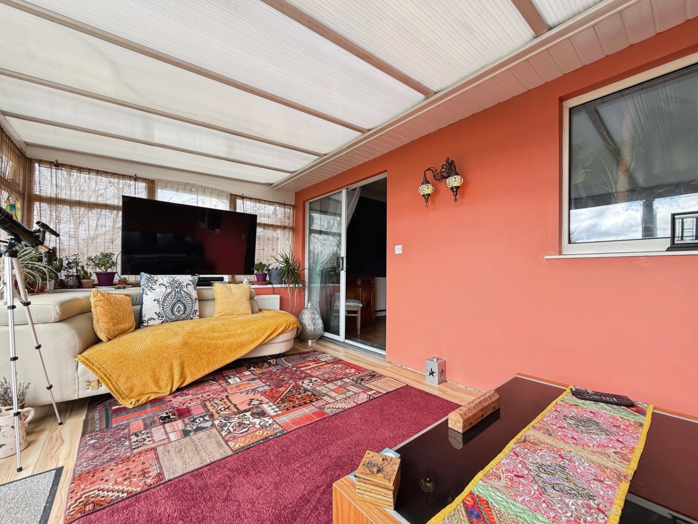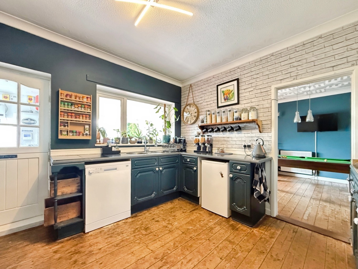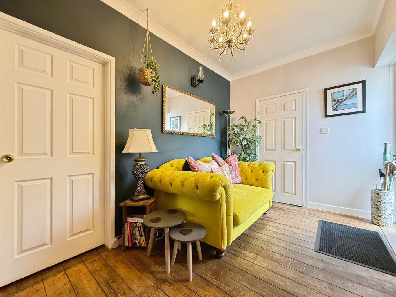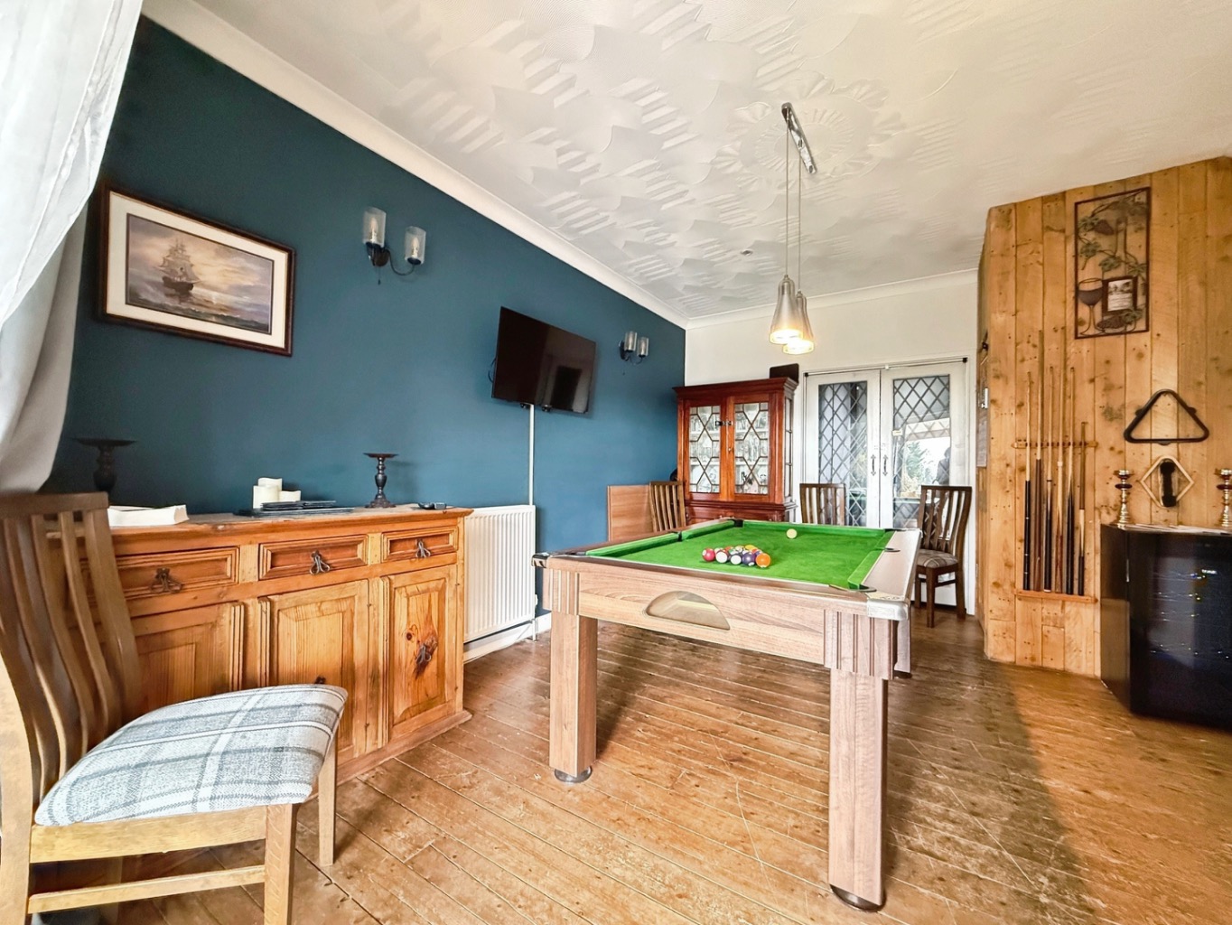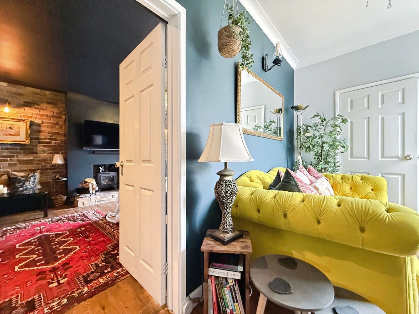 Set behind a generous frontage, the property boasts an expansive multi-vehicle driveway and a beautifully maintained front garden, immediately setting the tone for what lies beyond. From the moment you step inside, the home reveals a carefully curated interior, rich in character and designed with relaxation in mind.