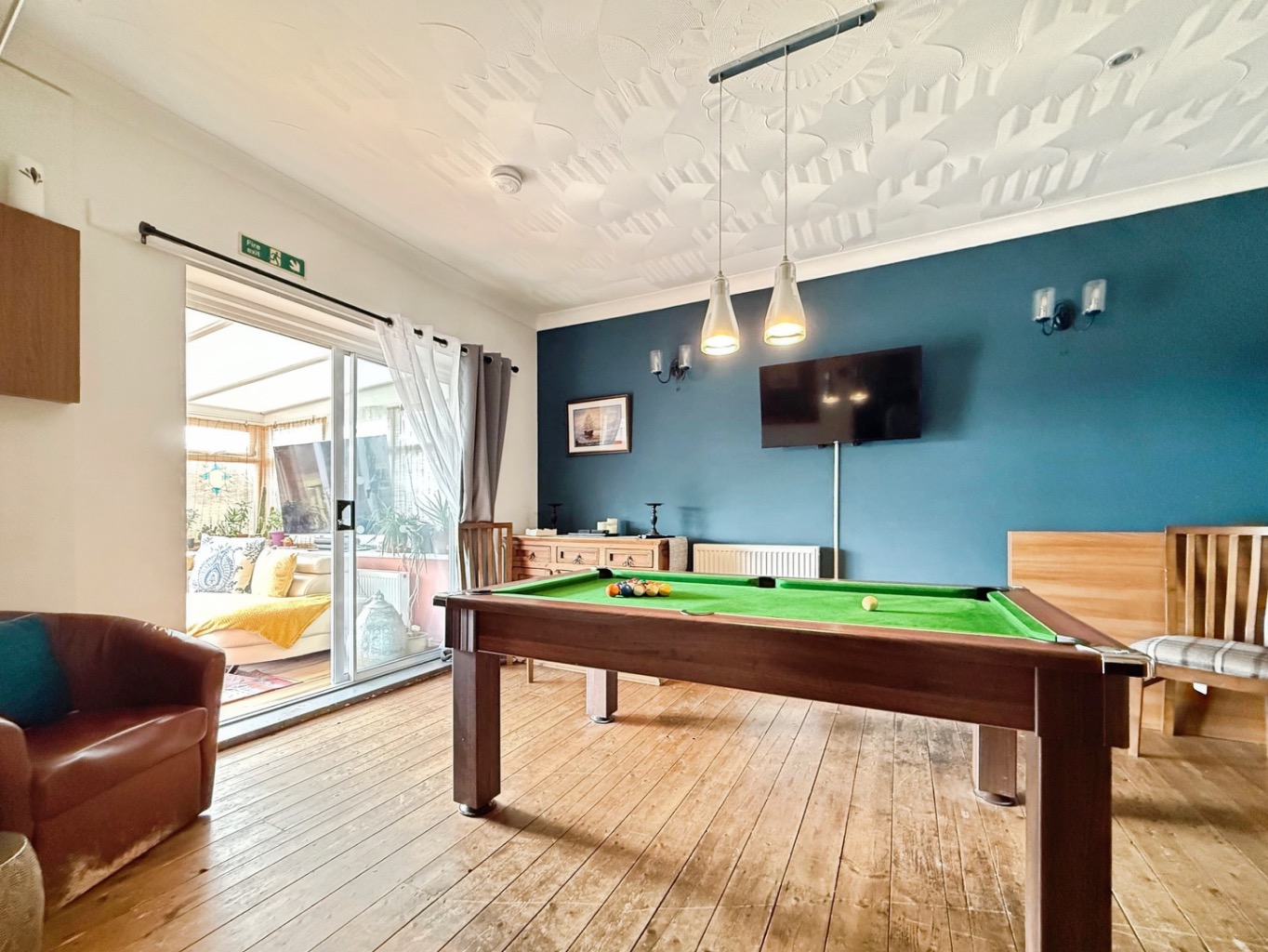 The accommodation is impressively versatile throughout, with an inviting entrance hallway leading to a contemporary wet room, well-proportioned ground floor bedrooms, and a spacious kitchen/breakfast room. A dedicated dining area, currently utilised as a games room, flows seamlessly into a bright conservatory, offering further flexibility for modern living or entertaining.