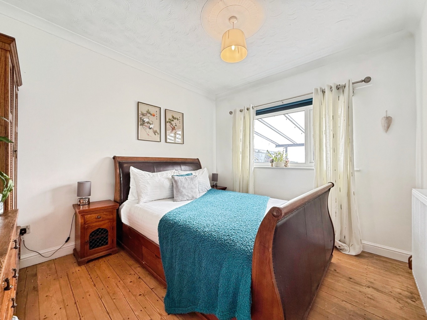Exposed floorboards, coving to ceiling, radiator, uPVC double glazed window to front elevation.